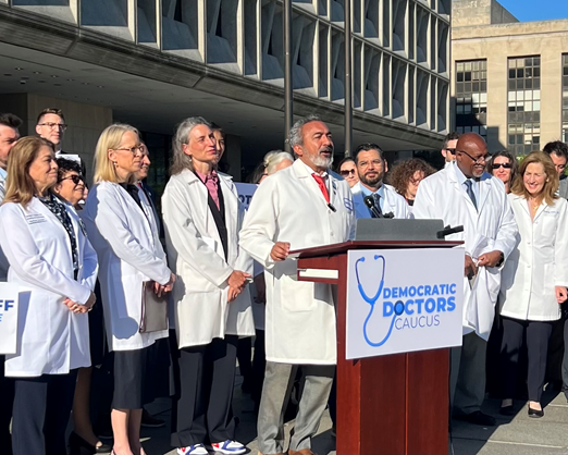 On May 7, 2025, AOA President Teresa A. Hubka, DO, joined members of the newly formed Democratic Doctors Caucus and other physician leaders on the steps of the U.S. Department of Health and Human Services (HHS) to advocate for protecting patients’ access to Medicaid. The event was an opportunity to engage directly with physician lawmakers and key health care stakeholders on the future of this critical program.